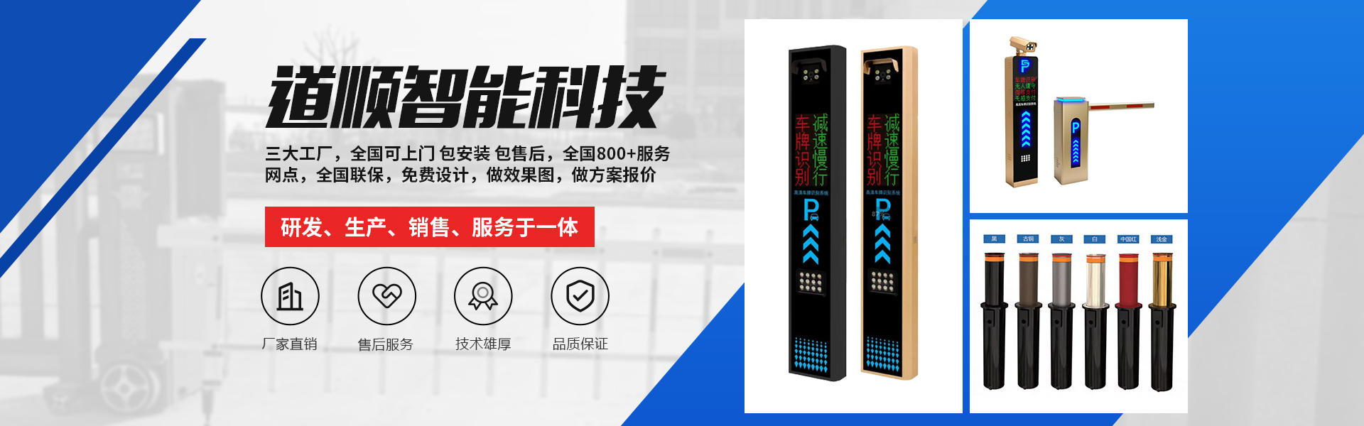 道順智能創(chuàng)立于2012年,是一家專業(yè)從事智慧停車解決方案、智慧社區(qū)解決方案和設備軟件與藍牙車牌識別、藍牙道閘、藍牙廣告道閘藍牙廣告門、藍牙通道閘、藍牙門禁梯控、人臉識別等藍牙系列多元化安防產(chǎn)品硬件研發(fā)、生產(chǎn)、銷售、服務于一體的 高新技術企業(yè)。